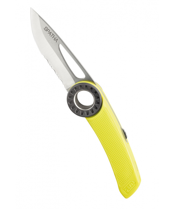 Nůž SPATHA je navržen speciálně pro horolezce. Profil čepele umožňuje snadné řezání lan a smyček. Má otvor pro karabinu pro připevnění nože k úvazku. Plastové kolečko se strukturou slouží k otevírání a zavírání nože v rukavicích, zvládnete ho oteřít i jednou rukou. Má pojistku proti náhodnému zavření.
