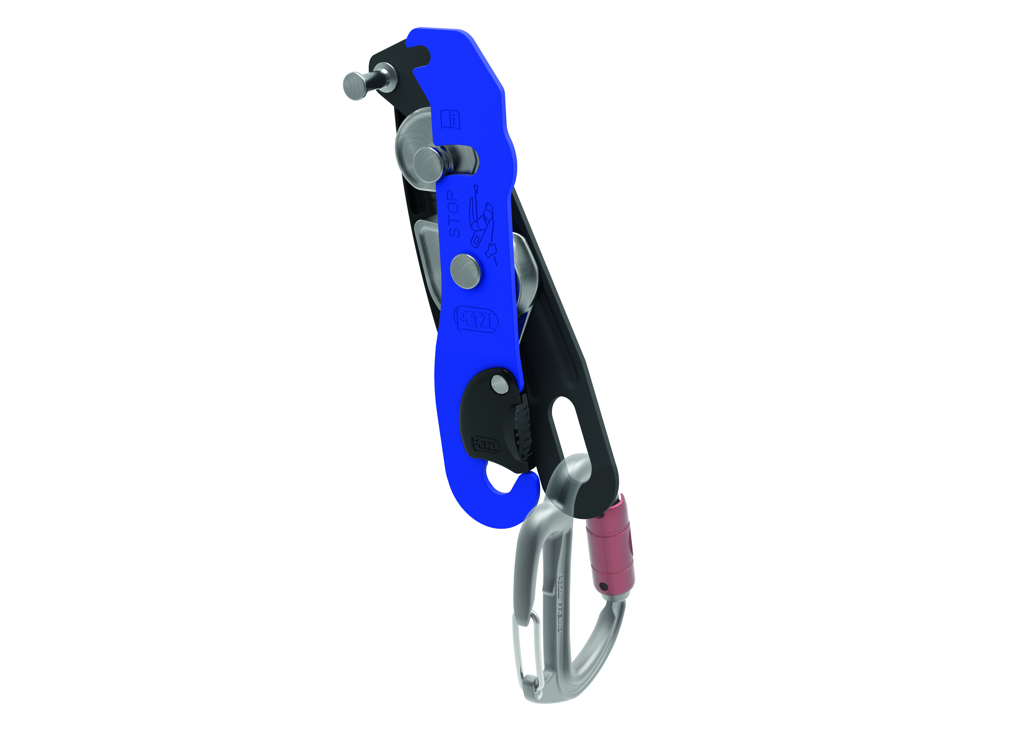 - bezpečnostní západka na otočné bočnici umožňuje snadnou instalaci lana, zatímco zařízení zůstává připojeno k postroji