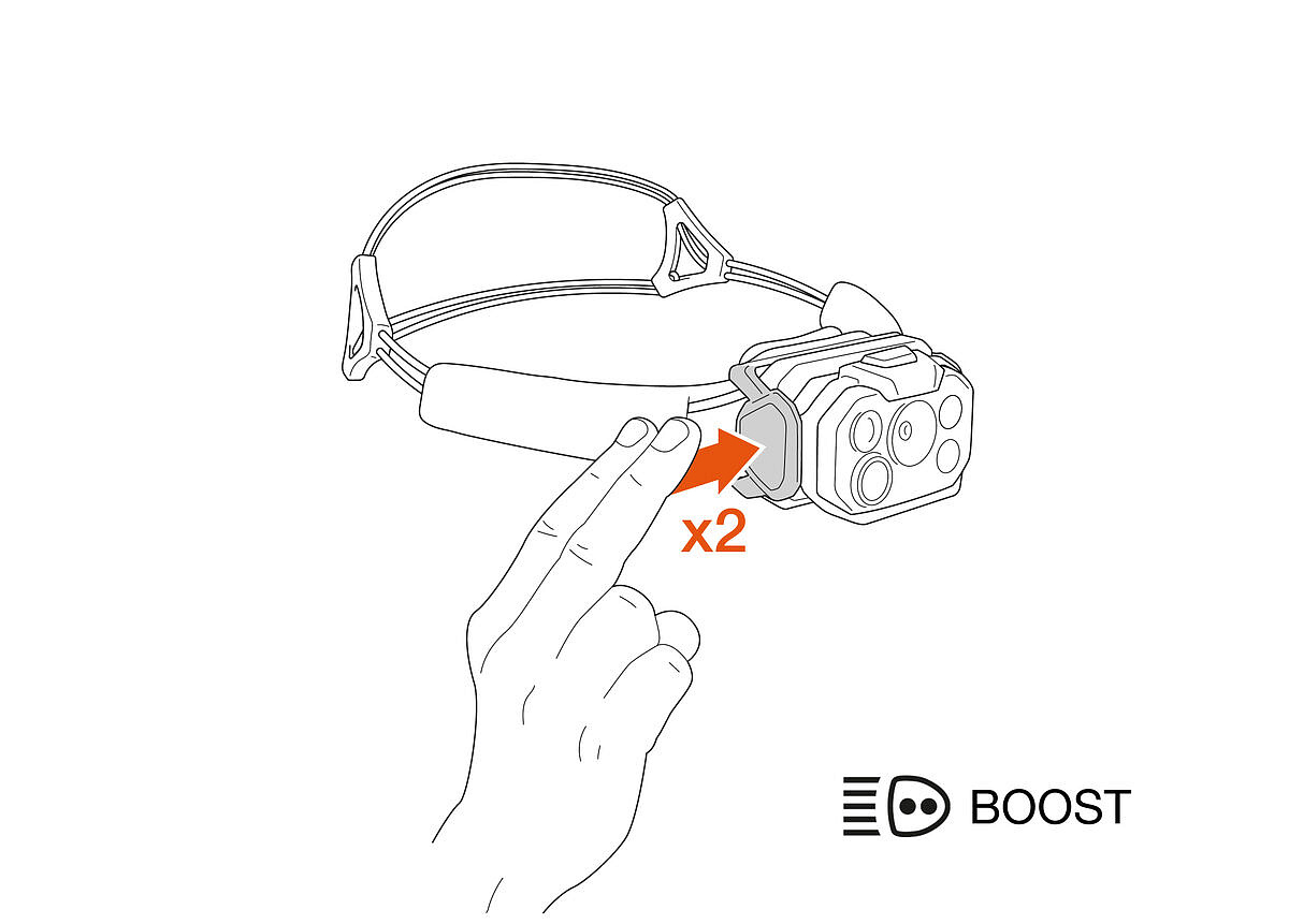 • 6sekundový posilovač výkonu BOOST se aktivuje rychlým dvojitým klepnutím prsty na bok svítilny, pomůže vám při orientaci v terénu na trase
