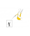 Úprava smyčky na trojůhelník bez nutnosti odpojení evakuované osoby je rychlá a snadná díky třem popruhům se suchým zipem Poznámka: Evakuace by měla být provedena po instalaci trojúhelníku, aby bylo zajištěno optimální pohodlí pro evakuovanou osobu. Konfigurace záchranné smyčky se nedoporučuje při zavěšení.