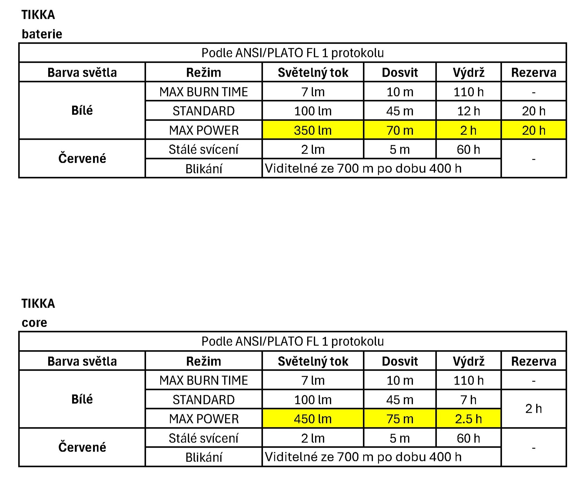 • Technologie HYBRID CONCEPT: TIKKA se dodává se 3 standardními bateriemi AAA/LR03 a je kompatibilní s dobíjecím akumulátorem CORE (není součástí balení); čelovka automaticky rozpozná zdroj energie a upraví světelný výstup