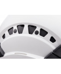 Systém CENTERFIT umožňuje dokonalé vycentrování přilby na hlavě (ovládá se dvěma kolečky po stranách) Systém FLIP & FIT umožňuje snížení hlavového pásku, což zaručuje, že přilba bezpečně sedí na hlavě. Systém se sklopí do skořepiny pro snadné skladování a přepravu Dodává se s vyměnitelnou standardní pohodlnou výstelkou Ochrana určená pro práci ve výškách a na zemi: