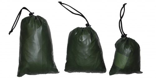 Velmi hustý Ripstop polyamid natíraný speciálním japonským PU a silikonem (stejná pevnost v dalším trhání jako u standardních materiálů, ale nižší pevnost v tahu.