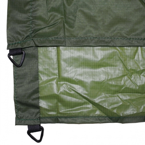 Velmi hustý Ripstop polyamid natíraný speciálním japonským PU a silikonem (stejná pevnost v dalším trhání jako u standardních materiálů, ale nižší pevnost v tahu.