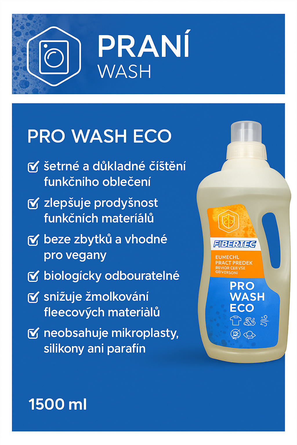 Prací prostředek Fibertec Pro Wash Eco 1500 ml.
