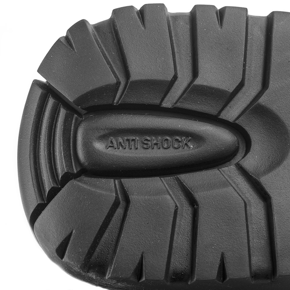 dvousložková PU+pryž, vysoce odolná vůči opotřebení, skvěle tlumící došlap, odolnost vůči uklouznutí SRC