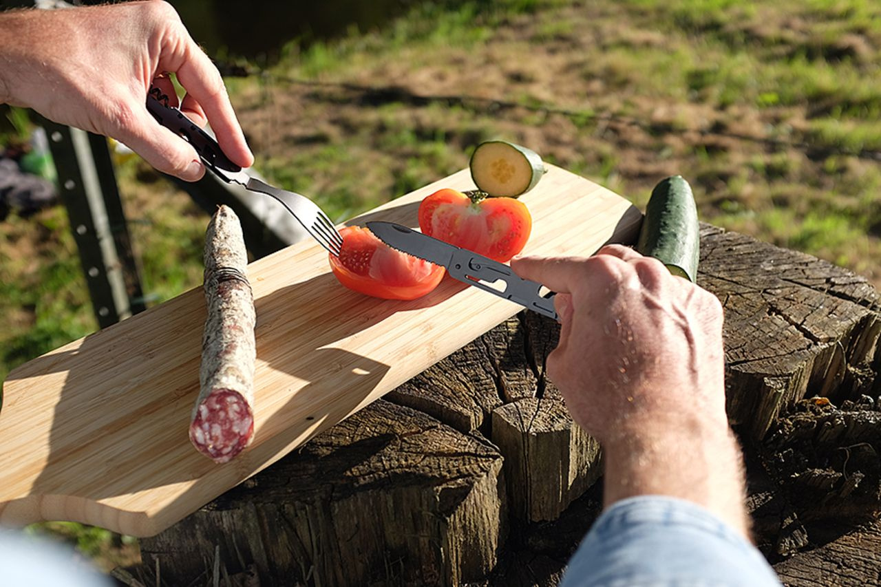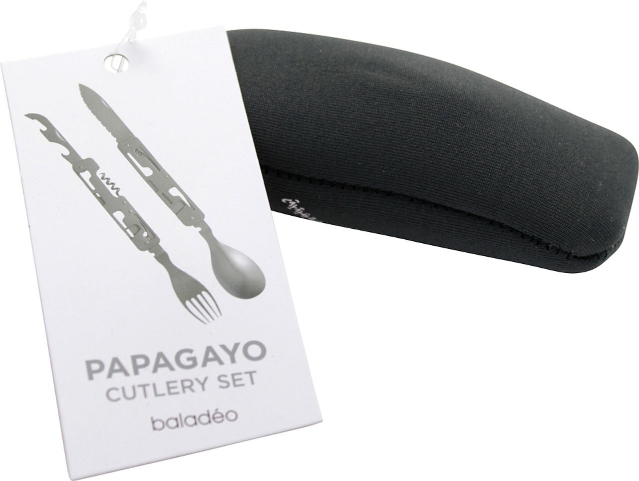 Cestovní nerezový příbor Baladeo Papagayo s 6-ti funkcemi, vhodný do batohu, na kolu i jako rezerva do auta.