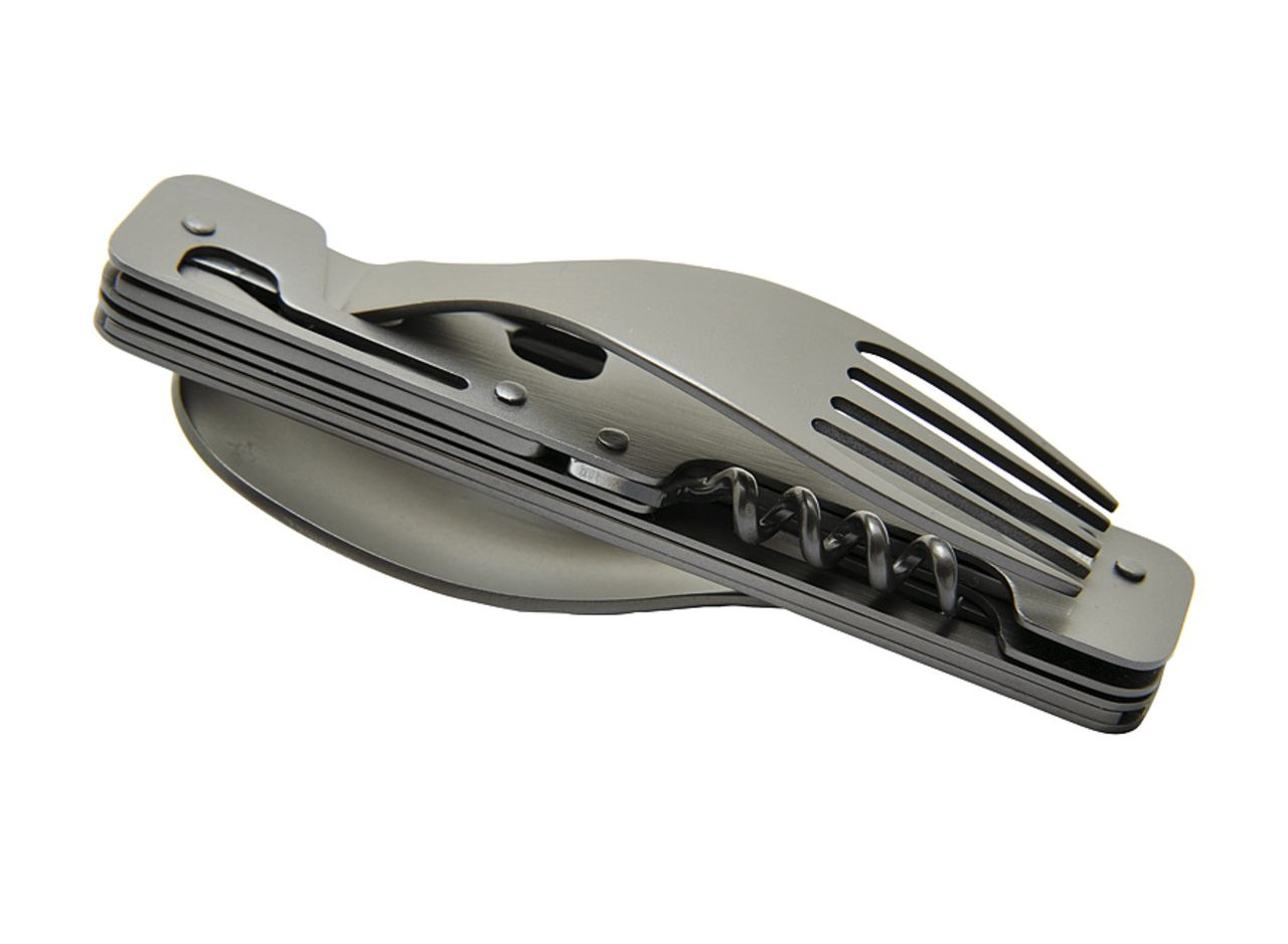 | Počet funkcí: | 6 - nůž se zubatým ostřím, lžička, vidlička, otvírák plechovek, vývrtka, otvírák lahví |