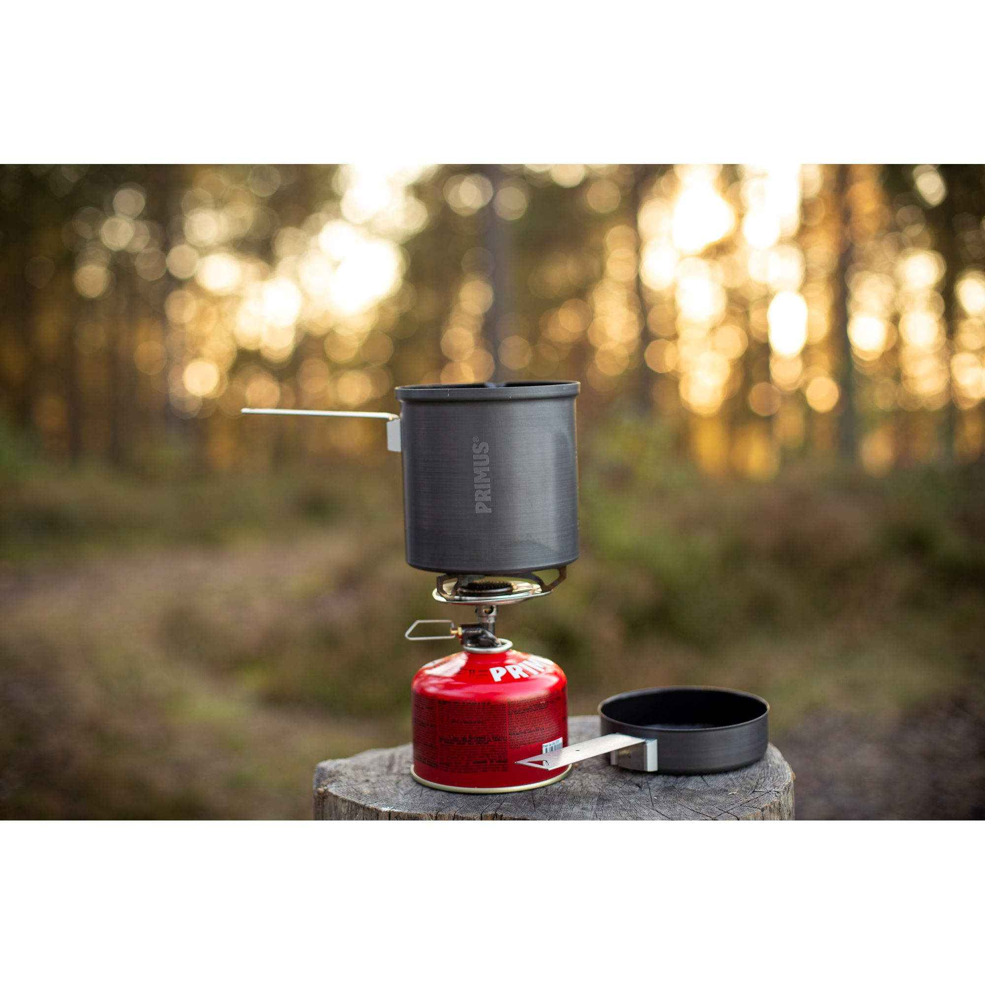 Odolný a lehký hrnec Primus Trek 1.0L vytvořený pro outdoorové kuchaře, kteří chtějí posunout své vaření na vyšší úroveň. Ideální pro přípravu menších porcí nebo v kombinaci s litrovým hrncem pro pokročilejší vaření. Hrnec je vyroben z eloxovaného hliníku, který dobře vede teplo. Má keramický nepřilnavý povlak pro snadnější vaření a čištění. Mírně silnější dno v porovnání se stěnami hrnce přispívá k rovnoměrnější teplotě v celém hrnci a minimalizuje riziko připálení pokrmu. Dno má také spirálovitý vzor, který zajišťuje optimální přenos tepla a přilnavost k podpěře hrnce na vařiči. Přiložená pánev, rovněž vyrobená z eloxovaného hliníku s keramickým nepřilnavým povrchem, slouží jako poklice. Součástí balení jsou dvě rukojeti, takže lze hrnec i pánev používat současně. Rukojeť pro hrnec uzamkne hrnec i pánev v zabalené poloze. Do hrnce se vejde vařič Essential Trail Stove s 230g plynovou nádobou (nejsou součástí balení), takže v batohu tvoří kompaktní jednotku.