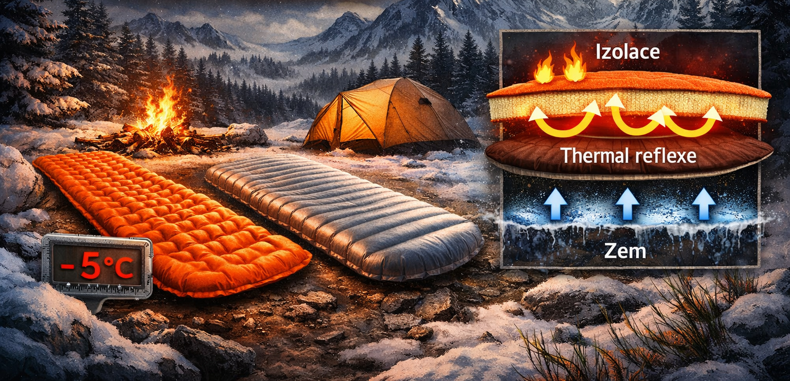 Karimatka nehřeje. Nevaří čaj, nepřikládá do ohně a rozhodně nemá radiátor. Jen zabraňuje tomu, aby ti zem vysála teplo z těla jak upír na dovolené. A přesně tohle určuje R-value – číslo, které říká, jestli se vyspíš v pohodě, nebo budeš v noci přemýšlet, kde jsi v životě udělal chybu.