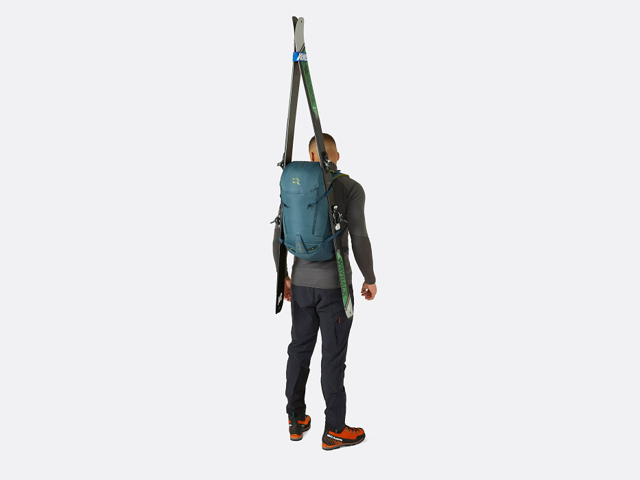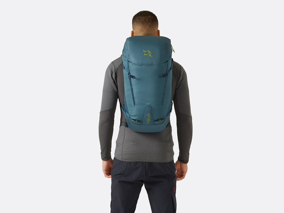 Ve stěně se každý problém násobí. Všechno, co by se mohlo pokazit, je jenom na obtíž. Důležitá je jednoduchost. A odolnost. Proto je tento batoh od Rabu stavěný tak, že o něm po většinu času nebudeš vědět. Sedí perfektně – jako by k tobě odjakživa patřil. Silnější recyklovaná tkanina po stranách vydrží to nejostřejší zacházení a lehčí (ale pořád odolný) materiál na čele pomáhá srazit hmotnost na minimum. Robustní zipy nezamrznou a otevřeš je i v rukavicích. Samozřejmě na batoh upneš cepíny nebo také lyže. A víc už není potřeba. Kudrlinky navíc by tě jen brzdily.