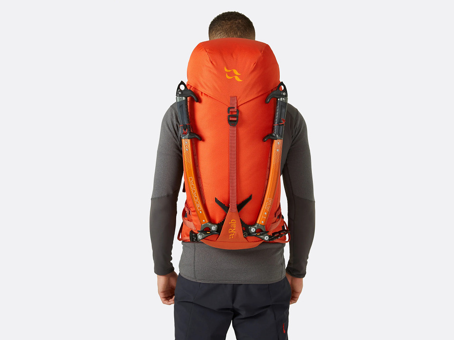 Ve stěně se každý problém násobí. Všechno, co by se mohlo pokazit, je jenom na obtíž. Důležitá je jednoduchost. A odolnost. Proto je tento batoh od Rabu stavěný tak, že o něm po většinu času nebudeš vědět. Sedí perfektně – jako by k tobě odjakživa patřil. Silnější recyklovaná tkanina po stranách vydrží to nejostřejší zacházení a lehčí (ale pořád odolný) materiál na čele pomáhá srazit hmotnost na minimum. Hlavní kovovou přezku a stahování horního vstupu můžeš ovládat i v silných mrazech – a v silných rukavicích. Samozřejmě na batoh upneš cepíny nebo také lyže. A víc už není potřeba. Kudrlinky navíc by tě jen brzdily.