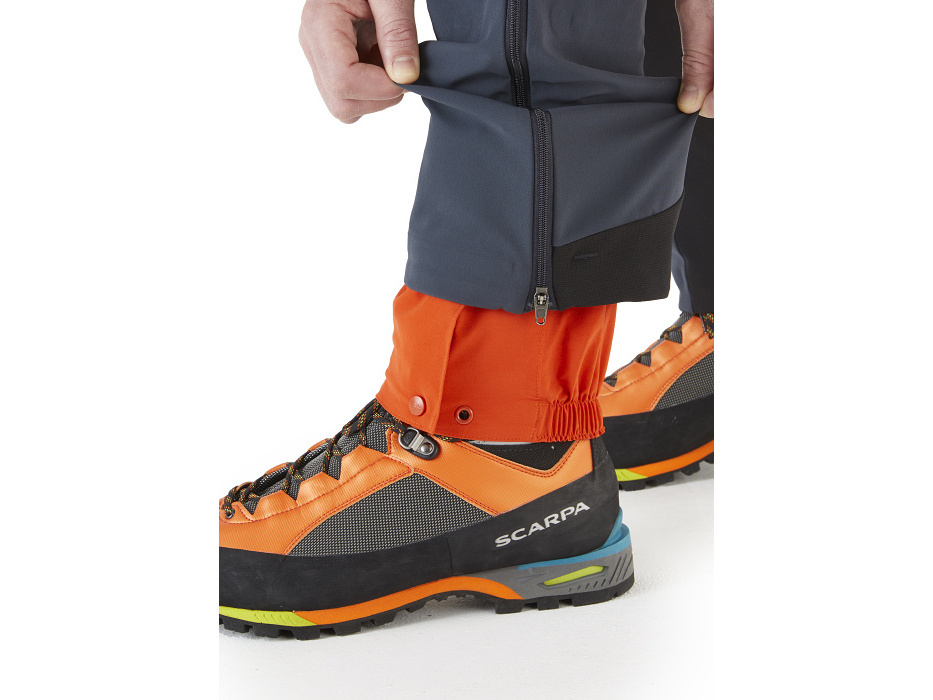 Zimní horský terén se nikdy s nikým nemaže a ani v tvém případě neudělá výjimku. Ledový vichr se ti pokusí nacpat rozvířený sníh až ke kůži a hrubá žula se o tebe začne nevybíravě otírat. Při obtížných zimních výstupech se pak ukáží přednosti odolných a větruvzdorných horolezeckých kalhot Rab Ascendor Alpine z dvouvrstvého softshellu Matrix™. A strečový materiál jistojistě nebude tím, co by tě ve stěně brzdilo v postupu. Zesílená vnitřní strana nohavic zocelí tvá lýtka před nezamýšlenými útoky ostrých hrotů maček a zipem u kotníků si nohavice přizpůsobíš pro horolezecké boty či lyžařské skelety. A kdyby ti zrovna vysvitlo nad hlavou slunce, můžeš si „vyvětrat“ pomocí skrytých zipů na stehnech.