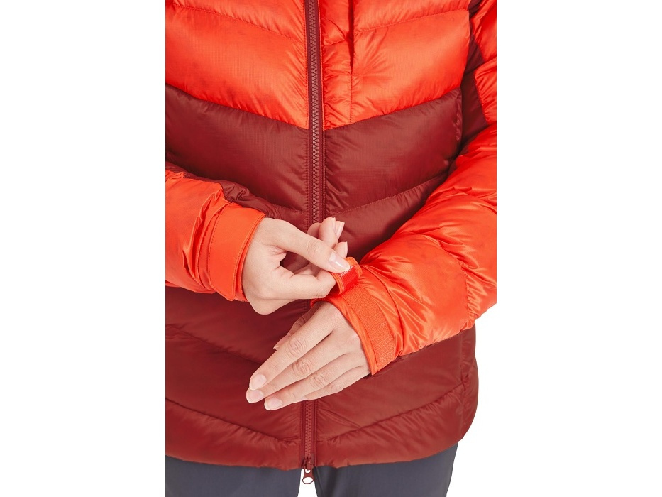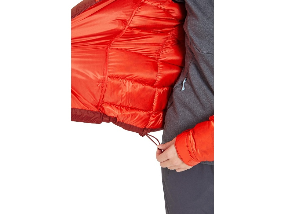 Konstrukce z Pertex® Quantum Pro, materiálu odolného proti větru a vodě, tě chrání před náhlými změnami počasí. Péřová izolace s plnivostí 700 cuin a hydrofobní úpravou Nikwax zajišťuje, že zůstaneš v teple i ve vlhkých podmínkách. Plně nastavitelná kapuce kompatibilní s helmou je vyplněná peřím a vybavená zpevněným kšiltem pro lepší ochranu.