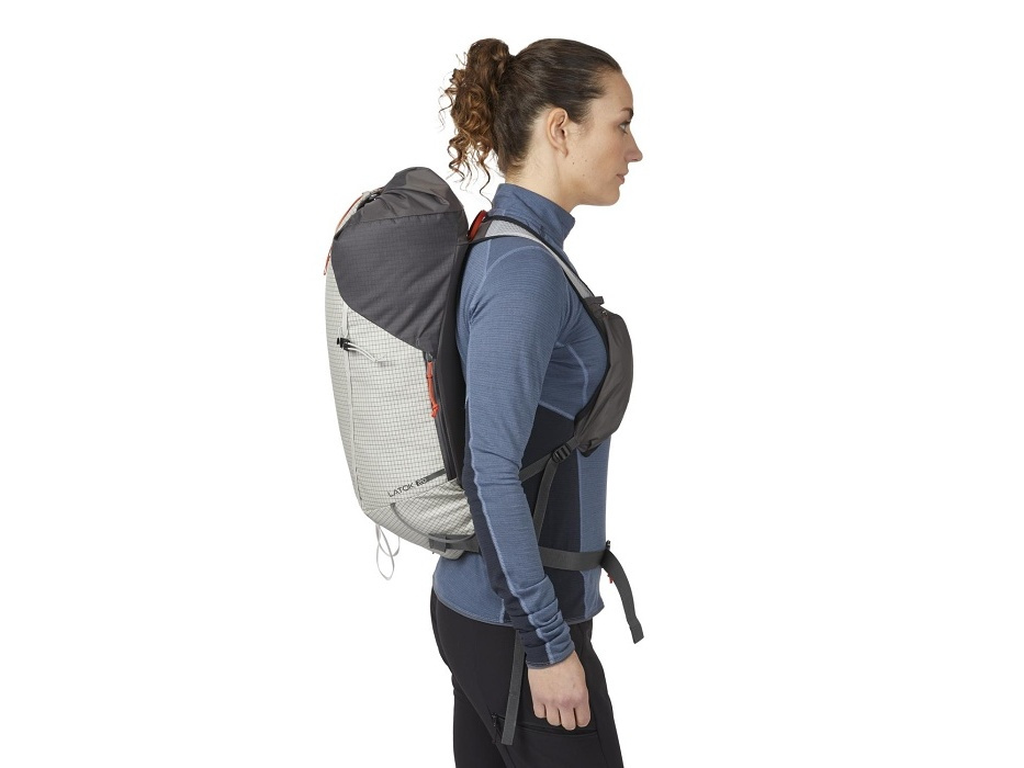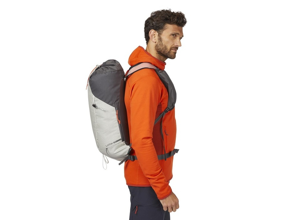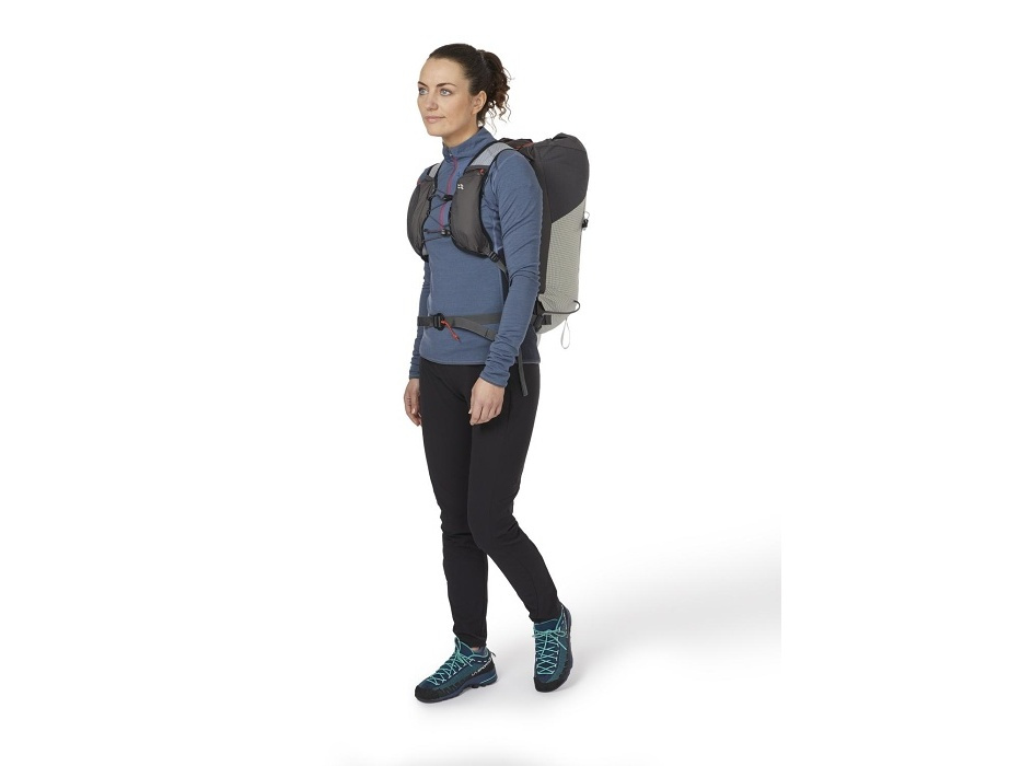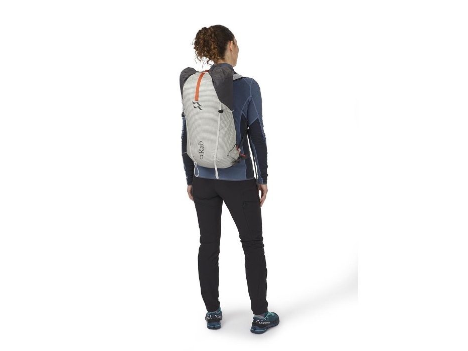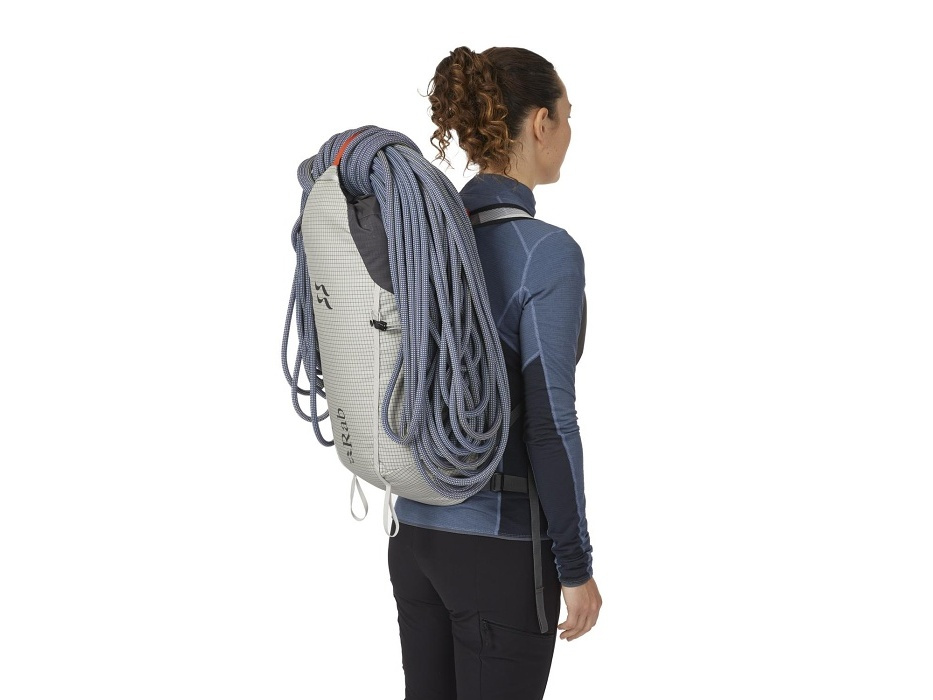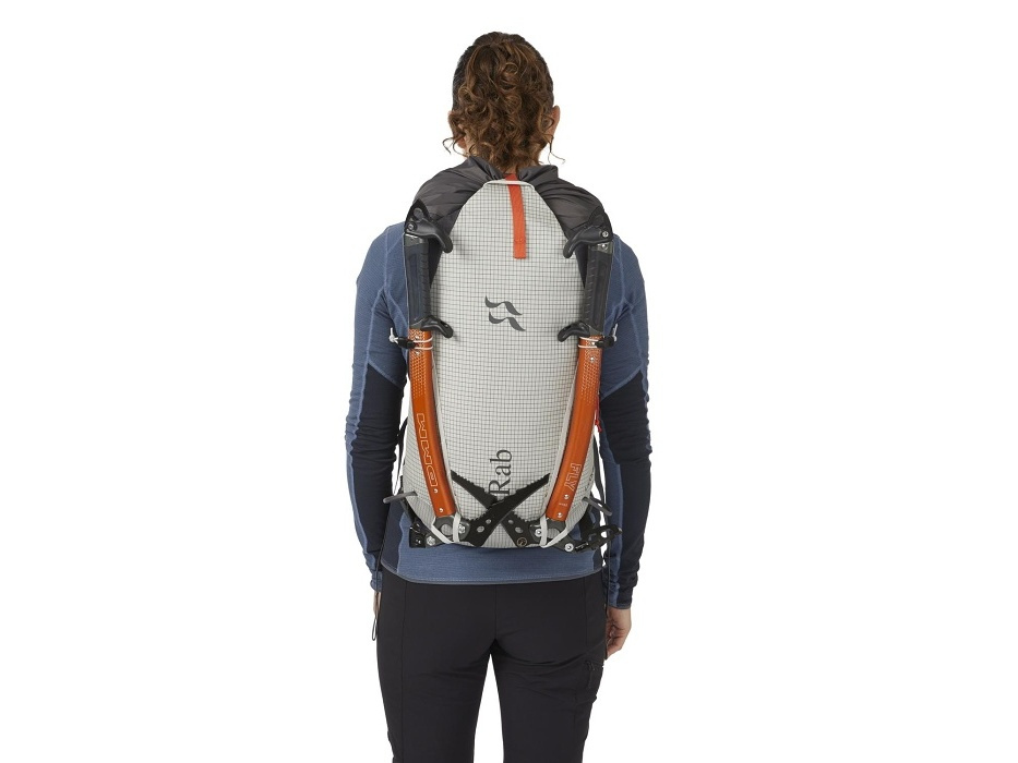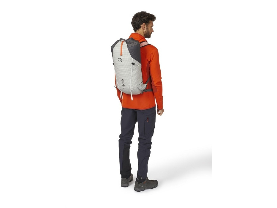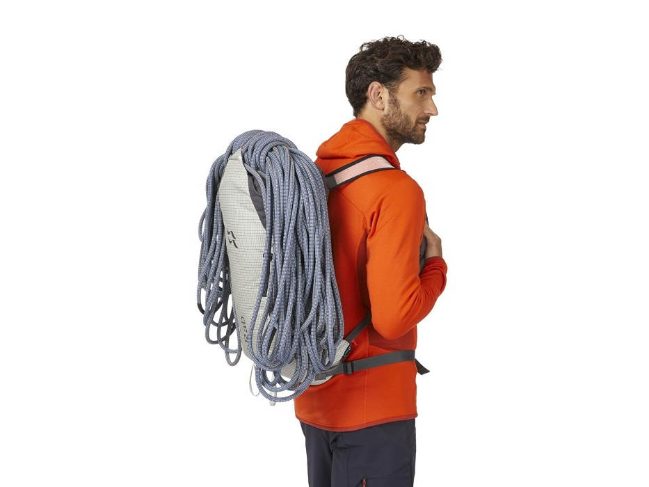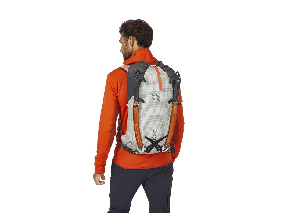 Fast and light. Při tomhle pojetí musí být na každou součást vybavení maximální spolehnutí. Žádný šev, přezka a samozřejmě ani ty – nic z toho nesmí povolit. Tento batoh proto v Rabu ušili z pevné tkaniny Cordura, kterou ještě vyztužili lehkými superodolnými vlákny Spectra®. Hmotnost přitom srazili na čísla, která sotva pocítíš. A při chvátání pod stěnu i následném lezení splyne batoh s tvým tělem – to zase díky nosnému systému v podobě vesty. Zvenčí každopádně upneš vše, co pro svou výzvu potřebuješ – cepíny, helmu, pár karabin.