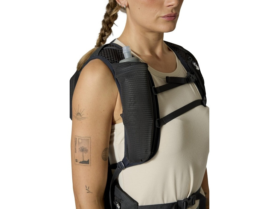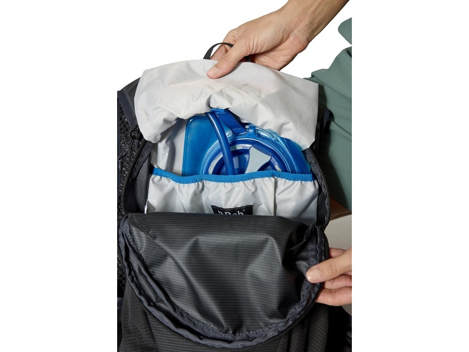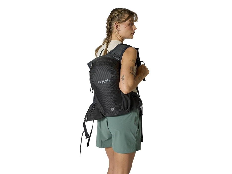 Pro svižné tempo mají v britském Derbyshire odjakživa slabost. A teď přišli s batohem Nitron, který při takových horských misích krásně sedí na těle. I v náročném terénu. Cestou nahoru i dolů. A navíc se do něj vleze i pořádný kus vybavení. Tvarovaný zádový panel přilne na tělo a ramenní popruhy, připomínající běžeckou vestu, zajistí stabilní usazení bez poskakování. Pod paže si připevníš skládací hole – případně ty klasické upevníš na čelo batohu. Gely, tyčinky a telefon – všechno budeš mít po ruce v bočních strečových kapsách na zip. A jak s vodou? Gumovou láhev zasuneš do kapsy na ramenním popruhu. A kdyby ti to nestačilo, uvnitř máš přihrádku na hydrovak.