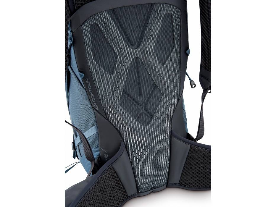 - Zádový systém: nastavitelný a tvarovaný Air Contour™ s lisovaným ABS panelem