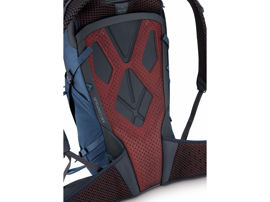 • Zádový systém: nastavitelný a tvarovaný Air Contour™ s lisovaným ABS panelem