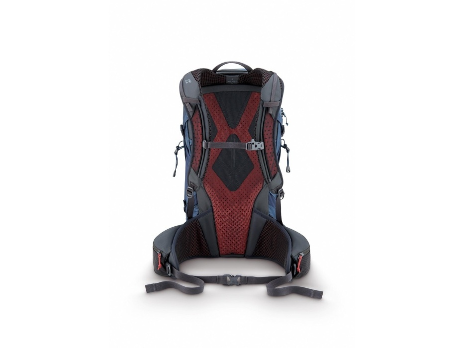• Polotuhá struktura nosného systému udržuje tvar batohu a zároveň se ohýbá s tělem