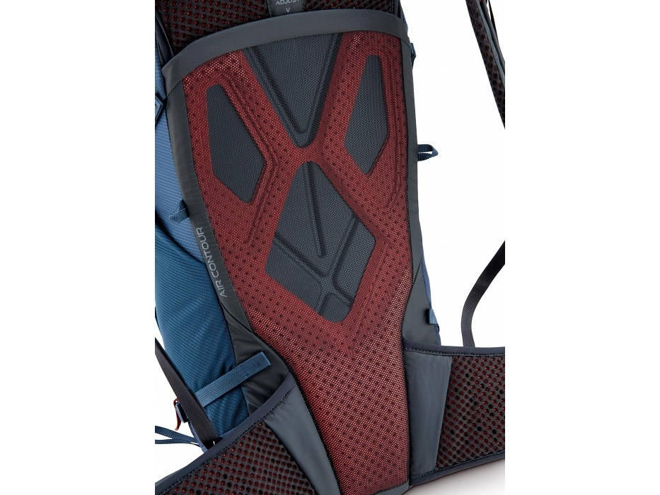 - Zádový systém: nastavitelný a tvarovaný Air Contour™ s lisovaným ABS panelem