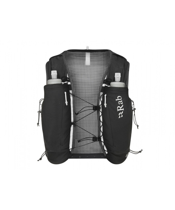 Ještě dál a tak, aby ti na horském trailu – při dlouhém běhu nebo třeba ultramaratonu – nic nescházelo. V Rabu obdařili tuto běžeckou vestu velkorysým úložným prostorem, nicméně pořád sedí na těle, jako by k tobě patřila. To hlavně díky lehké a přiléhavé konstrukci Mono Mesh Chassis, která se vytvaruje podle těla. Navíc je tento materiál o 50 % lehčí a zadržuje až o 70 % méně vlhkosti než jiné konstrukce z distanční síťoviny. Ke dvěma 500ml lahvím, které jsou součástí vesty, lze přidat také 2litrový hydrovak. Velká kapsa s otevíráním na zip ve tvaru U je velkorysým prostorem pro další vrstvy oblečení, no a gumový pavouk se může hodit k sušení již propoceného trička.