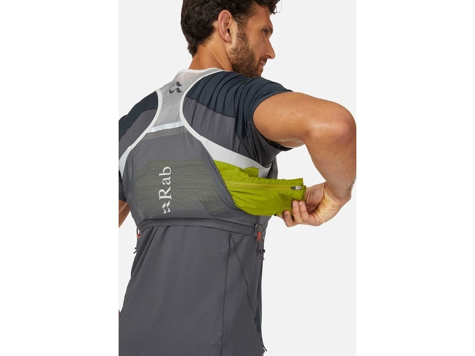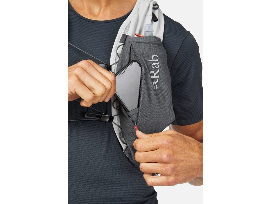 Nejkrásnější na tom je, že prostě můžeš. Že se můžeš rozběhnout po trailu, utíkat do kopce a jako kamzík přeskakovat po kamenech cestou necestou. A krásné je i to, že tato běžecká vesta od Rabu se na tobě ani nehne. Díky strečové konstrukci sedí na těle a nese vše, co na trase potřebuješ – energetické gely a tyčinky, větrovku, možná i telefon se sluchátky a motivačním playlistem. Ale hlavně – dvě půllitrové a osvěžující láhve s vodou, které jsou samozřejmě součástí vesty.