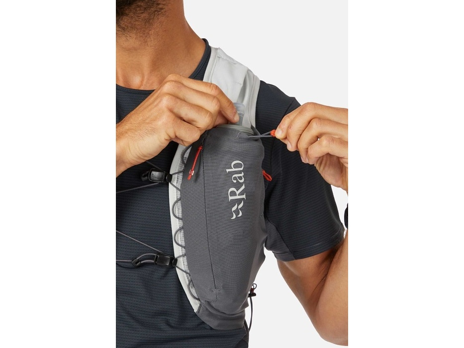 Nejkrásnější na tom je, že prostě můžeš. Že se můžeš rozběhnout po trailu, utíkat do kopce a jako kamzík přeskakovat po kamenech cestou necestou. A krásné je i to, že tato běžecká vesta od Rabu se na tobě ani nehne. Díky strečové konstrukci sedí na těle a nese vše, co na trase potřebuješ – energetické gely a tyčinky, větrovku, možná i telefon se sluchátky a motivačním playlistem. Ale hlavně – dvě půllitrové a osvěžující láhve s vodou, které jsou samozřejmě součástí vesty. A kdyby ti i to bylo málo, můžeš dovnitř vložit 2litrový hydrovak.