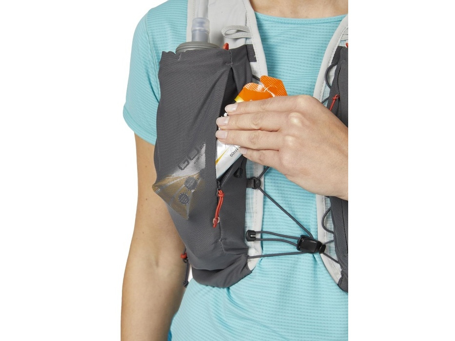 - Dvě přední YKK® skryté strečové síťové kapsy s ultralehkými zipy