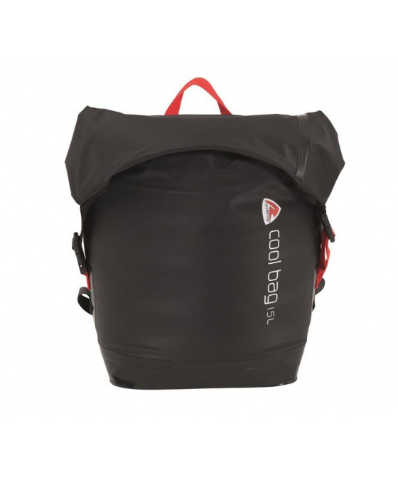 černá chladicí taška 15l a vodácký batoh v jednom s rolovacím uzavíráním se dvěma možnostmi zapnutí, integrovanými ramenními popruhy, podlepenými švy, polstrovanými stěnami a vnitřní aluminiovou vrstvouVíce