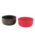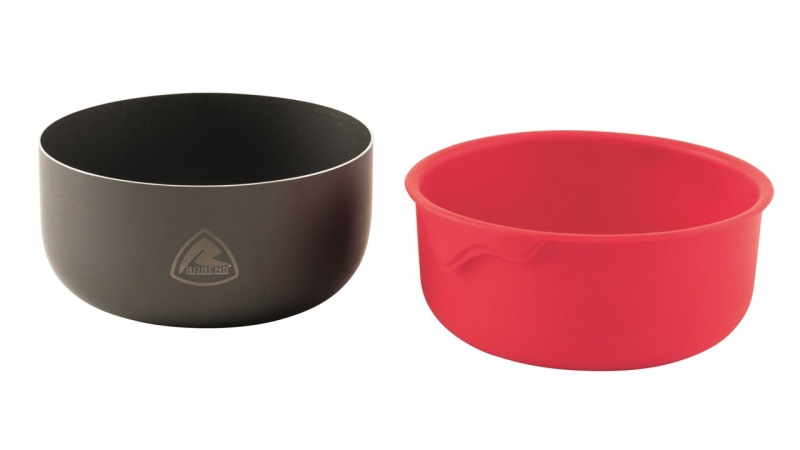 lehká kompaktní miska 450ml z tvrdě anodizovaného aluminia s vyjímatelnou vnitřní miskou se silikonu s převislými okraji zabraňujícími popálení rtůVíce