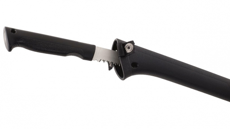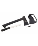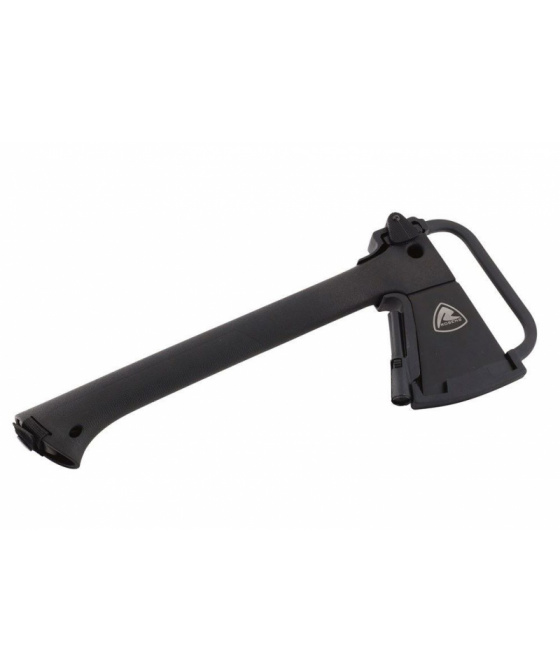 -výkonná kompaktní multifunkční sekera s černěnou čepelí -pila s břitem o délce 18 cm uložená v rukojeti sekery a zabezpečená poutkem na druk -čepel sekery z nerezové oceli je integrovaná v rukojeti z polyamidu -rukojeť je vybavena otvorem pro upevnění šňůrky -kryt čepele z pevného plastu na bázi nylonu s držadlem pro usnadnění manipulace -plastový klip na opasek -součástí krytu sekery je magnéziový podpalovač