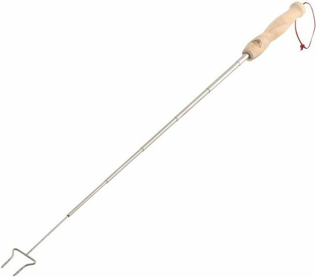 lehká a kompaktní teleskopická vidlice na opékání špekáčků, masa a dalších pochutin nad otevřeným ohněm vyrobeno z nerezové oceli dřevěná ergonomicky tvarovaná rukojeť poutko pro zavěšeníVíce