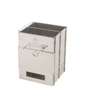 robustní nerezový vařič na dřevo 2.5kg se širokou horní částí pro použití s většími hrnci, stabilní základnou, odnímatelnou grilovací mřížkou, sklopným roštem a rukojeťmi pro snažší manipulaciVíce