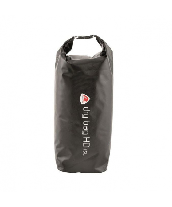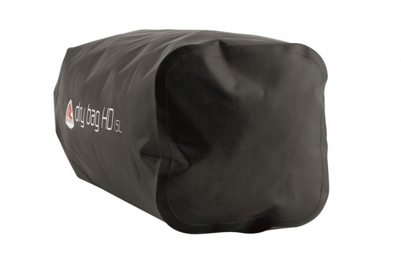 černý voděodolný kompaktní vak 15l z extrémně odolného nylonu s rolovacím uzavíráním, čtvercovou základnou pro optimální složení, PU zátěrem a plně podlepenými švy uchovávající věci v suchuVíce