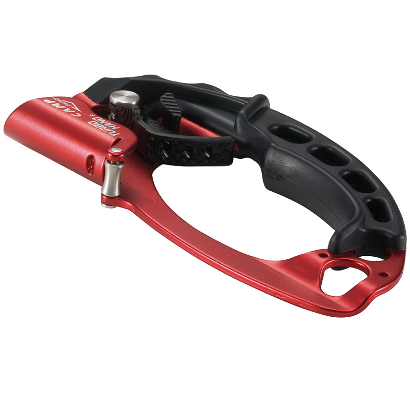 Turbohand je ruční blokant, který usnadňuje výstup na laně. Využívá špičkovou technologii a inovovanou konstrukci, díky které je výstup bezpečnější, rychlejší a navíc šetrný k lanu. Využívá patentovanou rolničku, která nejen pomáhá plynulejšímu pohybu po laně, ale také snižuje tření a tím pádem také nebezpečí poškození lana. Ergonomická pogumovaná rukojeť sahá až na vrchní část blokantu, což velmi zefektivňuje použití druhé ruky k výstupu nahoru. Blokant CAMP Turbohand je při výstupu v rovnoběžné pozici s lanem, čímž je zaručeno nejlepší a nejefektivnější stoupání. Pro optimální organizaci doplňků slouží tři velká oka, dva na spodní a jeden na vrchní části blokantu. Blokant Turbohand je ve verzi pro pravou i levou ruku a je vhodný pro lana od 8mm do 13mm. Robustní tělo je vyrobené ze 3,5mm silné hliníkové slitiny. Ozubená vačka má speciální povrchovou úpravou proti opotřebení a je opatřena otvory, které pomáhají zabránit hromadění nečistot. Otevírací systém je chráněn proti náhodnému otevření z obou stran. Přítomnost rolničky také umožňuje použít Turbohand jako blokovací kladku při zatížení do 50kg. POZOR: Tato konfigurace neumožňuje použití blokantu pro tahání nebo zajištění osob. Ocelový pomocník (Turbohand Guide, prodává se samostatně) může být přidán pomocí dvou šroubů na spodní část blokantu pro lepší stabilitu lana při dlouhých výstupech.