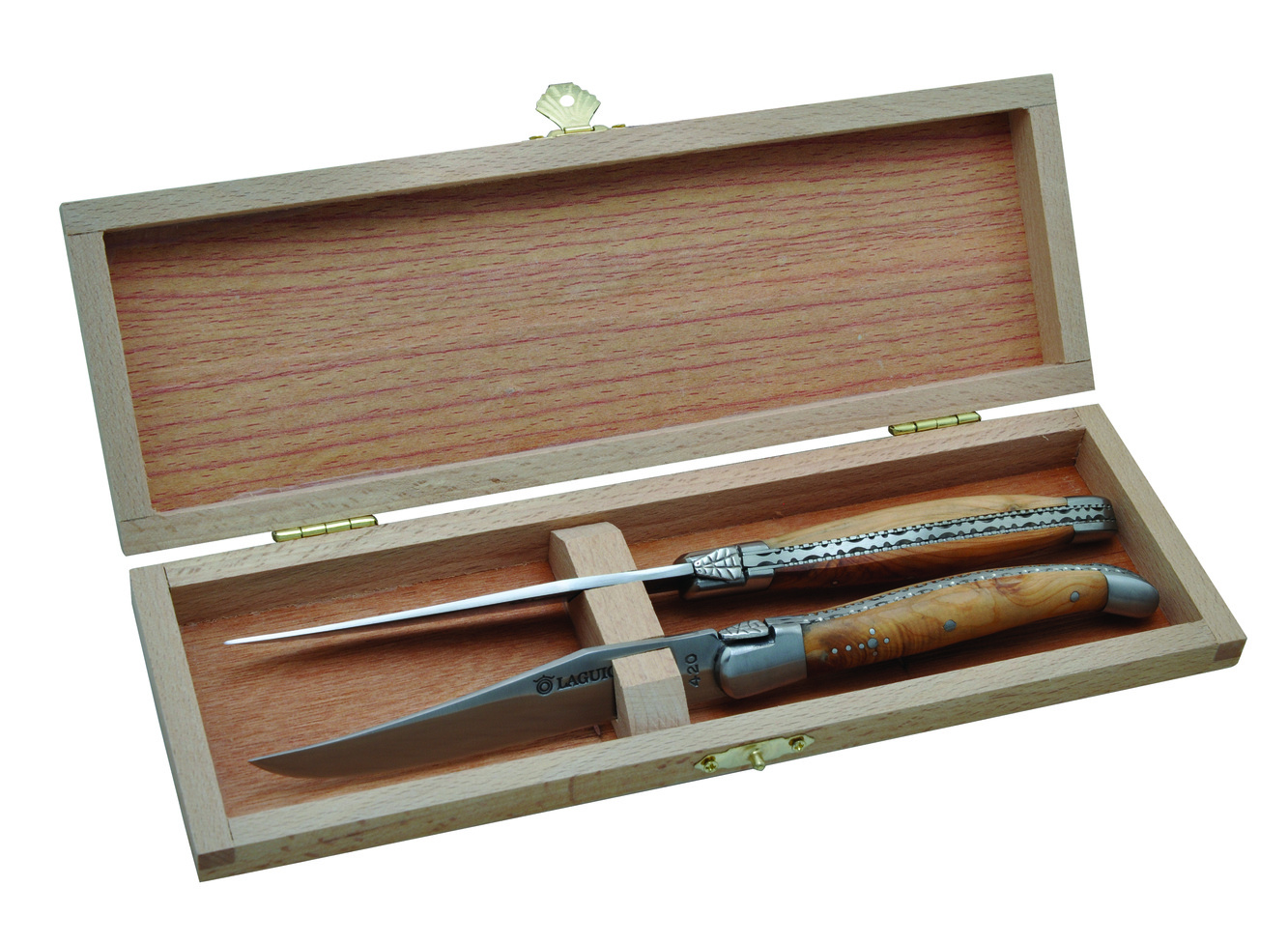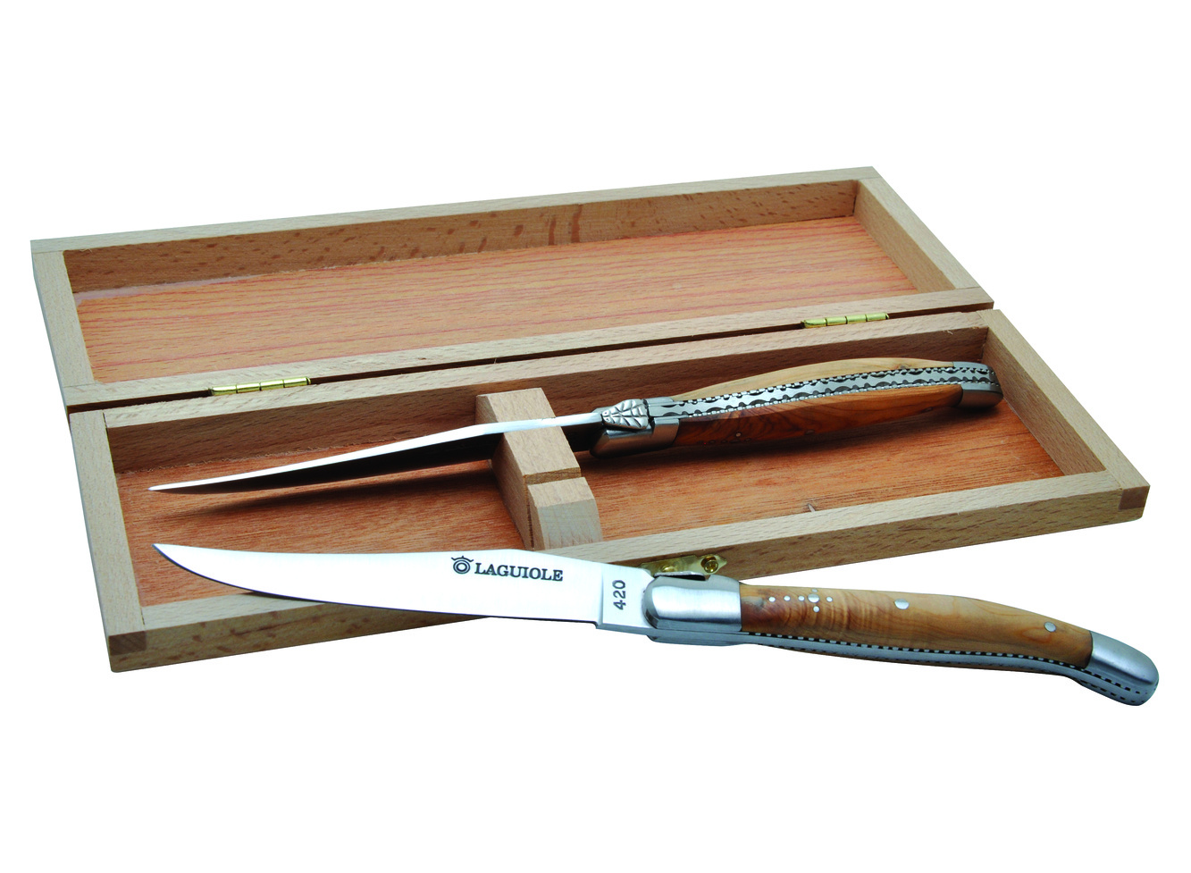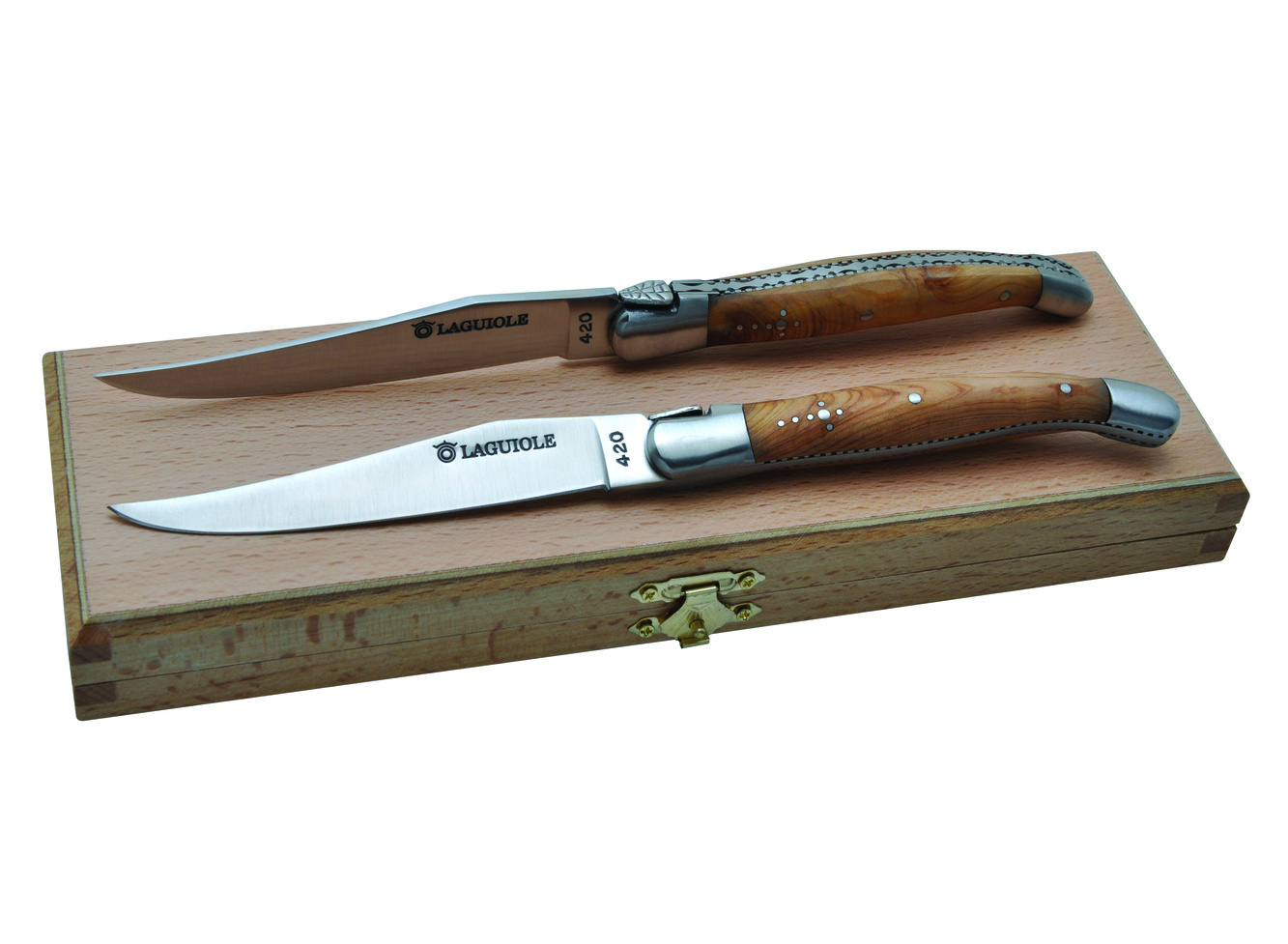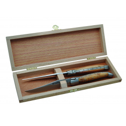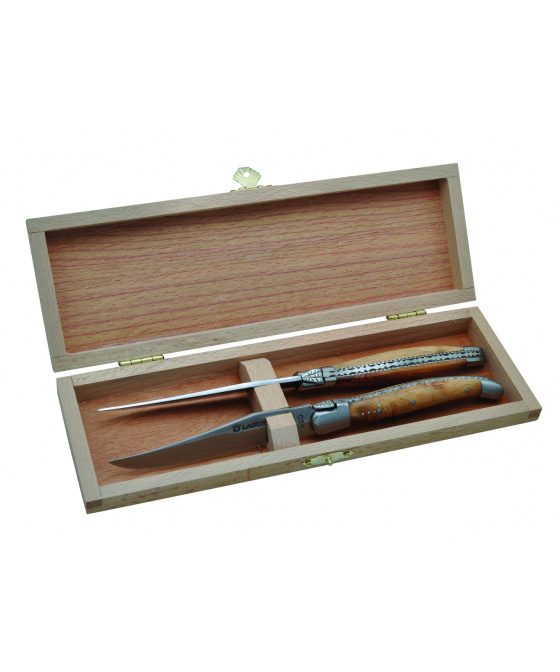 Exkluzivní sada 2 Laguiole steakových nožů s rukojetí z jalovcového dřeva.
