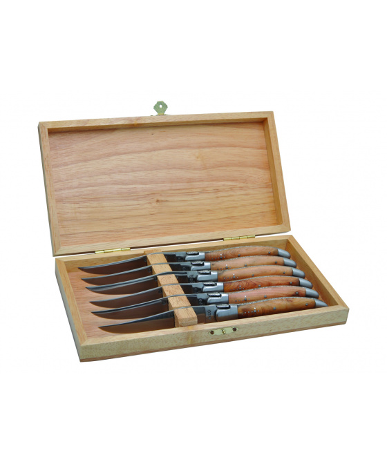 Sada 6ks steakových nožů Laguiole DUB124 čepel nerezová ocel,rukojeť jalovcové dřevo