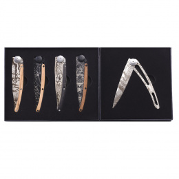 Sada 5-ti nožů Deejo z kolekce Earth, každý o hmotnosti 37g.