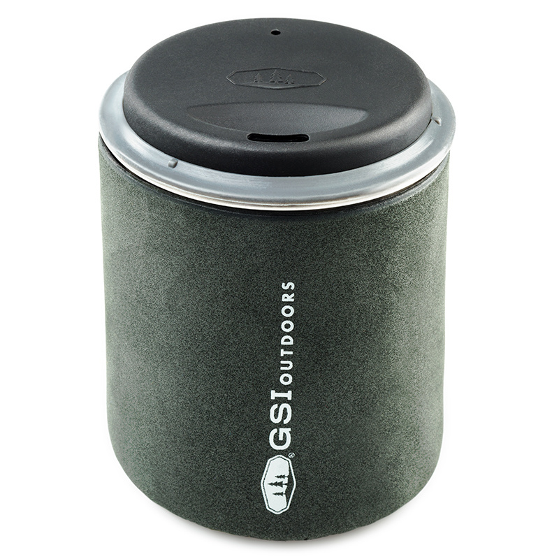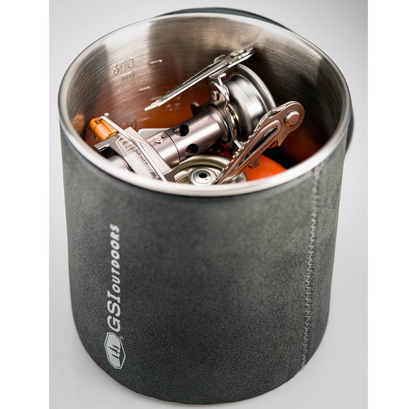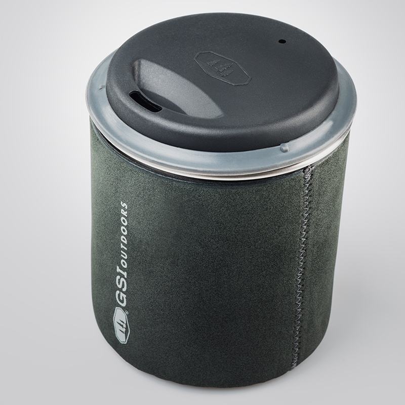Kvalitní nerezová sada v řadě kompaktního nádobí pro jednu osobu. Do sady lze umístit také plynový vařič GSI Outdoors Pinnacle Canister Stove i plynovou kartuši GSI Outdoors Isobutane Fuel 110g, která však stejně jako vařič není součástí balení. Tato velmi skladná souprava je vhodná pro přípravu teplých jídel nebo horkých nápojů. Snadnou manipulaci zajišťuje teplu odolná silikonová chňapka, která je součástí balení. Nerez ocel je velmi odolná proti promáčknutí. Víčko u hrnečku lze použít jako pítko. Tento hrnek je po obvodu opatřen neoprénovým obalem. Obal lze použít i jako nádobu na vodu.