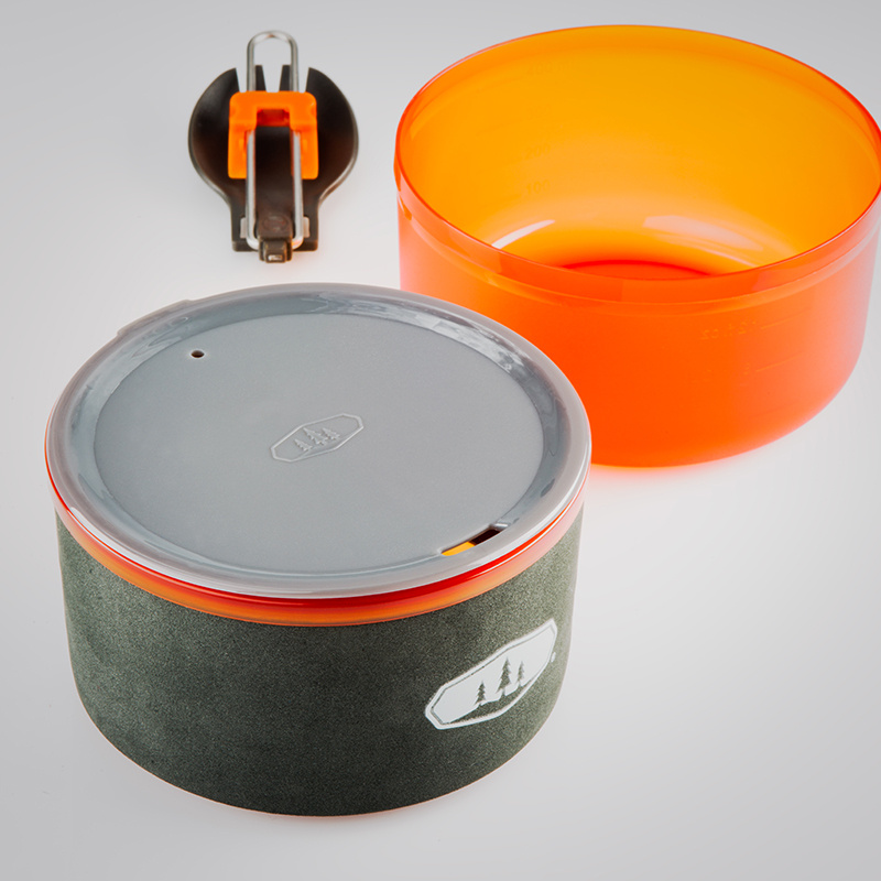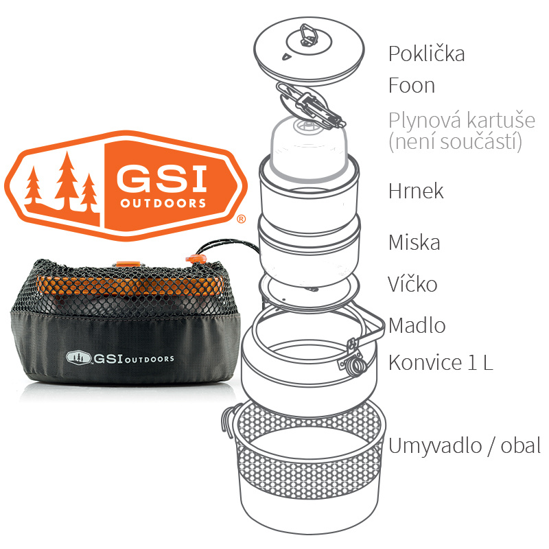 Nízkoprofilová konvička s hrnkem a mističkou pro jednu osobu z nejlehčí řady Halulite - tvrdě anodizovaný (eloxovaný) hliník. Do sady lze umístit také plynovou kartuši 110g (není součástí balení). Nízká konvička s objemem 1l a širokým hrdlem umožňuje kromě vaření také pohodlný přístup např. na rozpouštění sněhu. Unikátní hrnek a miska s nízkým těžištěm zabraňuje vylití. Víčko u hrnečku lze použít jako pítko. Tento hrnek je po obvodu opatřen neoprénovým obalem.