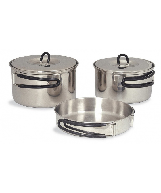 5ti dílná sada nádobí vyrobená z kvalitní nerez oceli. Obsahuje hrnce 1,3l (16 x 9 cm, 275 g), hrnec 0,9l (14,5 x 8 cm, 250 g), 2 pokličky a pánev (16 x 3,5 cm, 155 g). Hmotnost 695 g.