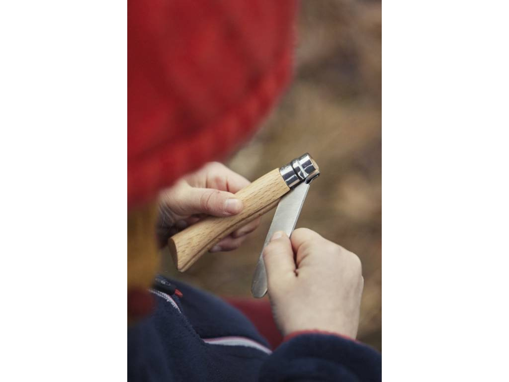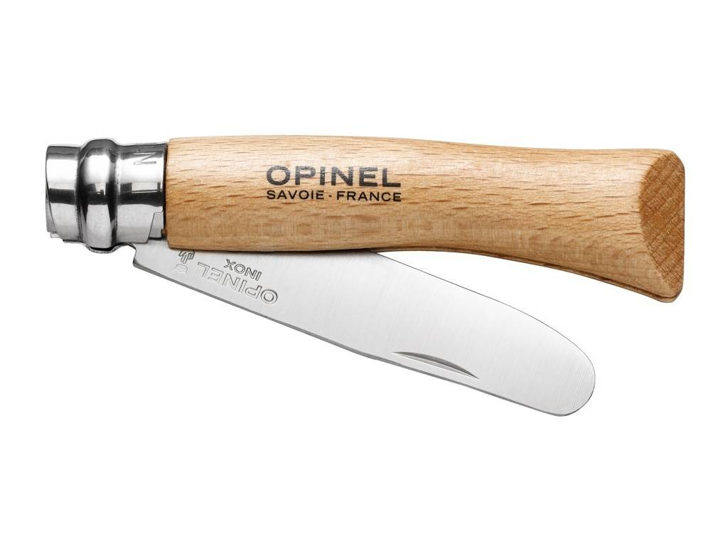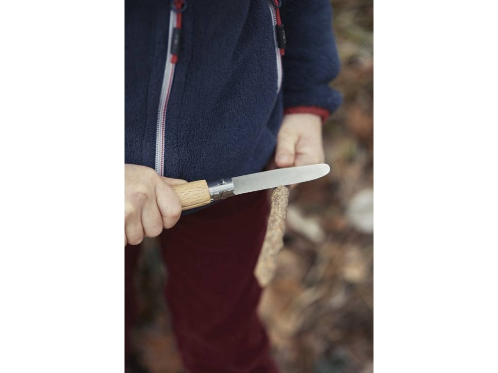 Sadu tvoří kapesní zavírací nůž OPINEL VR N°07 Inox, s délkou zaoblené čepele 8 cm a látkové pouzdro. Nože My first OPINEL jsou více než vhodné jako první nůž pro děti starší 7 let, případně je s úspěchem užijete jako piknikové nože na roztírání másla nebo krájení ovoce a zeleniny. Zaoblená čepel je stejně ostrá jako u standardních nožů Opinel, nože jsou opatřeny proti samovolnému sklopení bezpečnostní pojistkou ViroBlock. Nerezová leštěná ocel 12C27M je díky antikorozním vlastnostem chromu maximálně odolná korozi a prakticky bezúdržbová, s excelentní dlouhotrvající ostrostí. Buková rukojeť v přírodní úpravě, ošetřená lakem. Pouzdro z odolné látky je možné zavěsit na opasek nebo díky koženému očku i kamkoliv jinam.