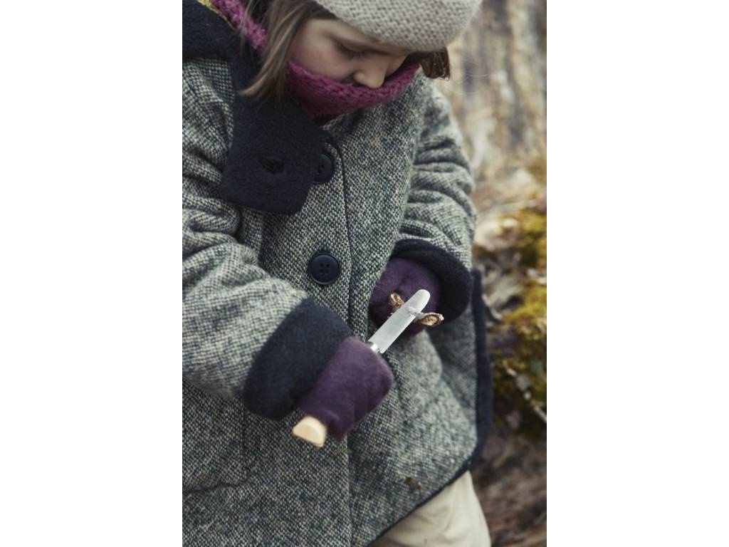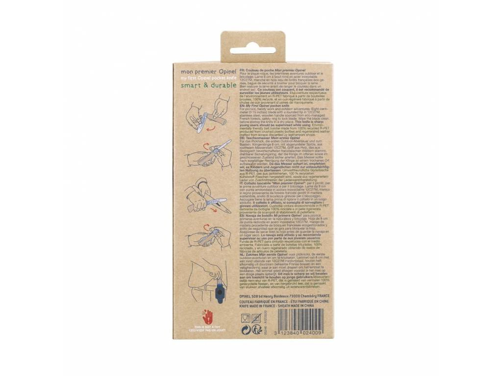 Rukojeť je z bukového dřeva stromů, vypěstovaných udržitelným způsobem výhradně ve Francii. Pouzdro je vyrobeno jako 100% recyklát: látká z drcených PET lahví a kožené nášivky i šňůrka z odpadu kožařských dílen.