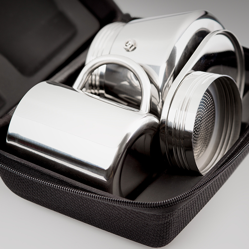 Stainless Mini Espresso 4 cup je set mini presovače a většího espresso šálku. Celý set je z velice kvalitní a odolné nerezové oceli. Jednoduchý a stylový design, jednoduché ovládání a údržba jsou hlavní bonusy k vychutnání si rychle a dokonale připravené čerstvé kávy.