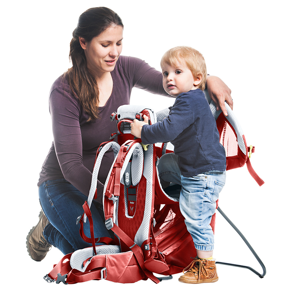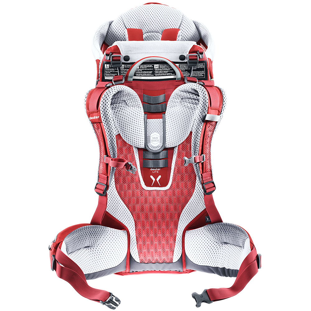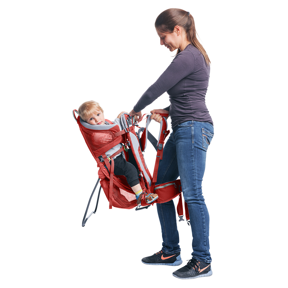 Dětské nosítko Deuter Kid Comfort Active SL s nastavitelnými zády s možností regulace dětského posedu.