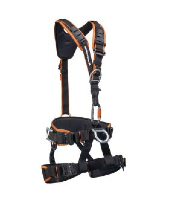 Všestranný pracovní postroj s optimální polohou nohavic vůči pasu při všech možných polohách pracovníka. Po odejmutí ramenních popruhů může být použit jako sedák.