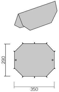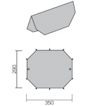 Ultralehký přístřešek Skyline 2 k volnému zavěšení v přírodě pro dvě osoby, 8 vypínacích popruhů, 2 kovová oka vhodná k uchycení trekových hůlek (nejsou součástí balení), dodáváno včetně transportního vaku