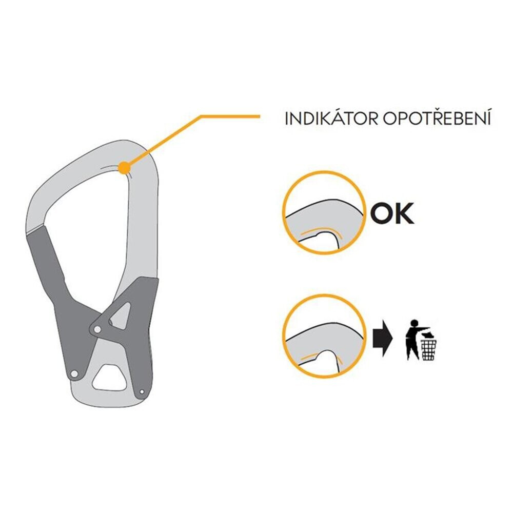 Párací tlumič pádové energie pro zajištěné cesty, lanová centra a lanové parky s dlaňovými Keylock karabinami.