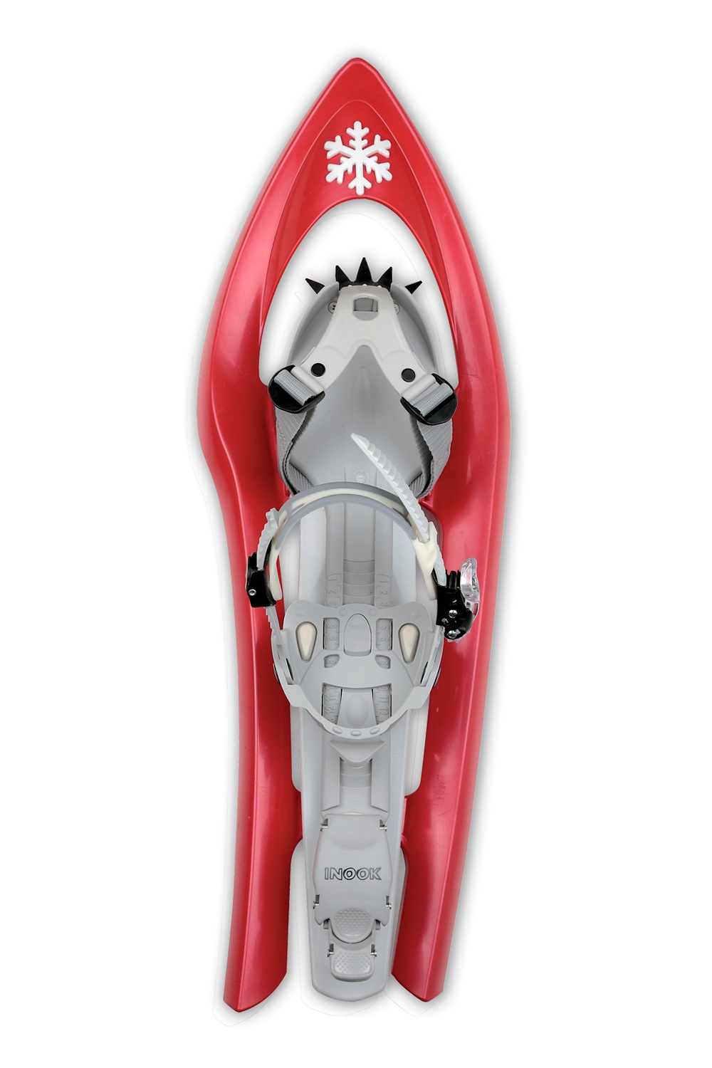 Nosná plocha sněžnice je vyrobena z velmi kvalitního plastu, který je dostatečně pevný i v tuhých mrazech. Tvar sněžnice řadí tento model spíš ke sportovnímu užití (jednodenní výlety, rekreační sportovní vyžití, atd…). Sněžnice je osazena šesti ocelovými hroty a dalšími dvěma na výklopné špičce. E-move je vybavena o proti ostatním modelům dvojtým kloubem, díky kterému je chůze do kopce mnohem přirozenější a účinější proti případnému proklouznutí. Dále je sněžnice vybavena sytémem umožňujcí vychýlení do stran, díky kterému je travezrování v kopci mnohem přirozenější. Sněžnice Inook mají výborně řešený systém uchycení špičky boty, který velmi dobře upevní jakoukoliv botu (trekkingová, snowboardová, …). Sněžnice díky posuvnému systému uchycení paty je velmi snadno nastavitelná pro jakoukoliv velikost boty. Maximální velikost boty je 12. Inook Inookem dělá jedinečný systém zamykání paty. Zamknutí či odemknutí lze jednoduše udělat holí vestoje, jak známe ze skialpového vázání. Už žádné problémy při překračování spadlých stromů a podobně. Lišta, po které se posouvá uchycení paty, je z vyztuženého materiálu. Proto lze zamykací systém použít i jako celkem užitečné podložení paty, které též známe ze skialpů. Za zmínku stojí i chytře řešené upínání boty. Dotažení boty je pomocí ráčny jak známe ze snowboardového vázání. Na ráčně je speciální systém, díky kterému lze ráčnu snadno povolit i v rukavicích. Navíc lze upínací pásek vystředit pomocí druhé ráčny a přizpůsobit tak objemu boty.