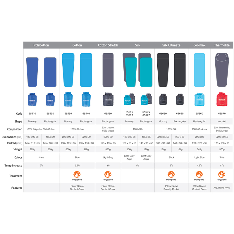 Lehký, prodyšný spací vak ve tvaru obdélníka, který je možný použít samostatně nebo jako vložku do spacáku. Materiál je ošetřen technologií Polygiene® Control of Pour, která udržuje svěží vůni bez zatuchnutí s antimikrobakteriální úpravou.